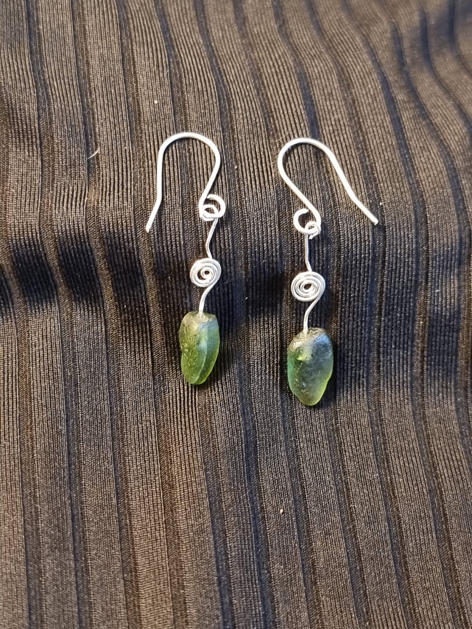 hand made from a matching pair of sea glass teardrops in sterling silver.