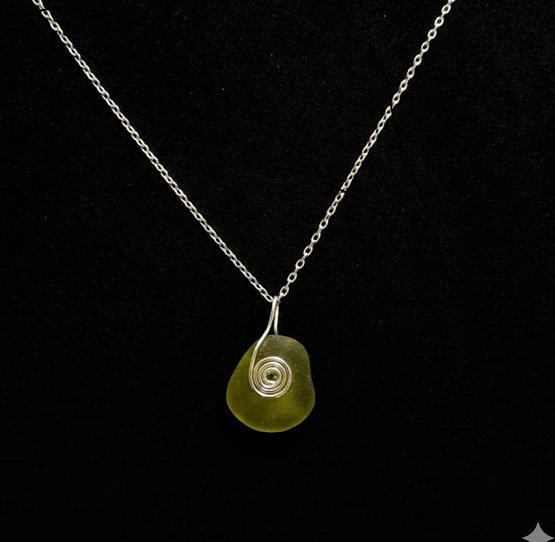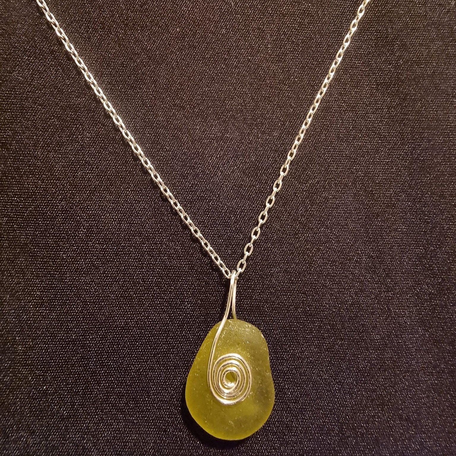 Crafted with love and care, 925 silver and genuine hand picked seaglass celtic spiral pendant on 925 diamond cut curb chain. The piece of sea glass in this jewellery has been polished by the ocean for 10s or 100s of years… a hundred beaches, ten thousand waves, it brings the joyous journey of the ocean. sold on 45 centimeter chain